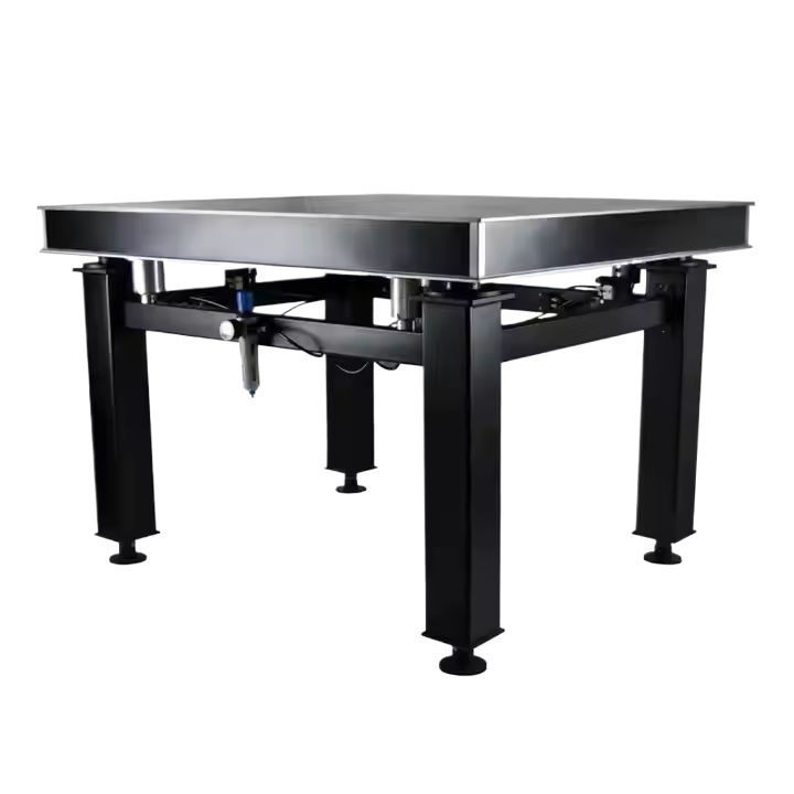 Inherent Frequency 1.0-2.0Hz, vertically; 1.0-2.0Hz, horizontall Vibration Isolation Structur Ultra thin air spring Leveling Typ Automat Vibration Damping Typ Porous quasi-laminar flow damping element with diffuse Total Table Heigh 800mm Working Air Pressur 0.2-0.4MPa Compressed Air Sourc Silent compressor (noise level) <50dB Vibration Isolating Efficiency 82~88%@5Hz, 86~95%@10Hz, vertically 78~86%@5Hz, 84~92%@10Hz, horizontall Re-leveling Accurac ±0.1mm Table Top Flatnes ≤0.05mm/m² Surfaced Roughnes ≤0.8μm, matt surface finis Isolator Height Adjustment Rang ±10mm Mounting Holes M6 tapped holes on 25mm grid. Hole to edge 12.5mm or 37.5mm Top Skin 5mm Bottom Skin 4mm Material Stainless Steel -